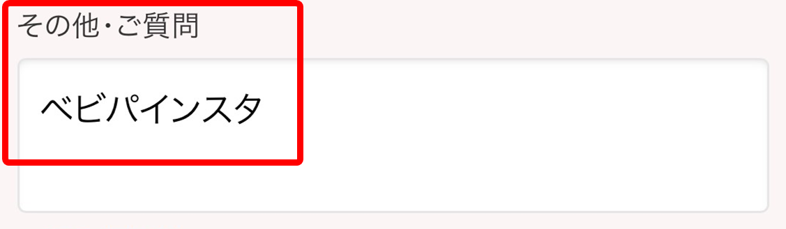 下記の通り、指定の欄に「ベビパインスタ」と入力してください。